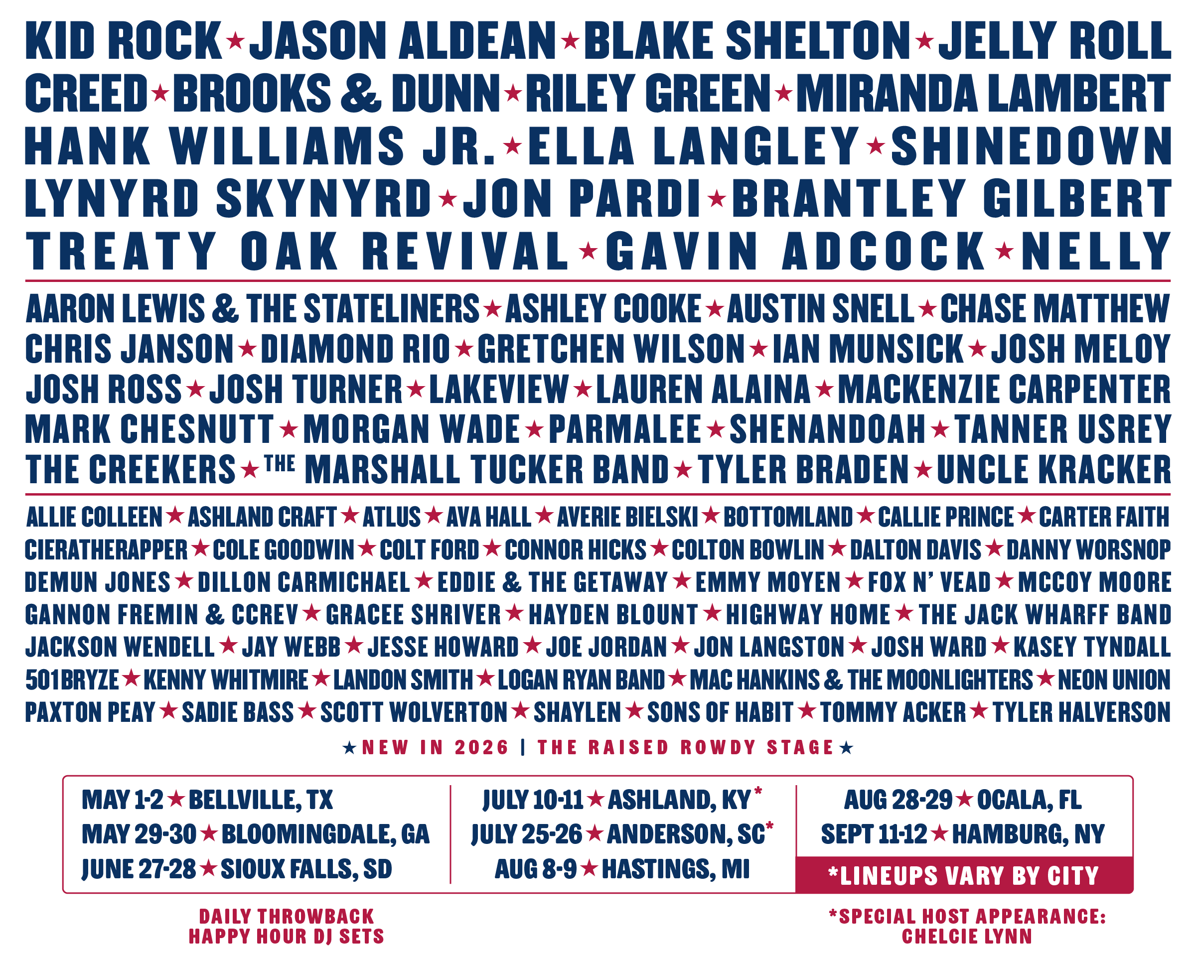 Kid Rock · Jason Aldean · Ella Langley · Brantley Gilbert · Aaron Lewis & The Stateliners · Chase Matthew · Shenandoah · Diamond Rio · Josh Meloy · Tanner Usrey · Josh Ward · Logan Ryan Band · Gannon Fremin & CCREV · Jackson Wendell · Grace Shriver · Connor Hicks · Tommy Acker · Callie PriNce
